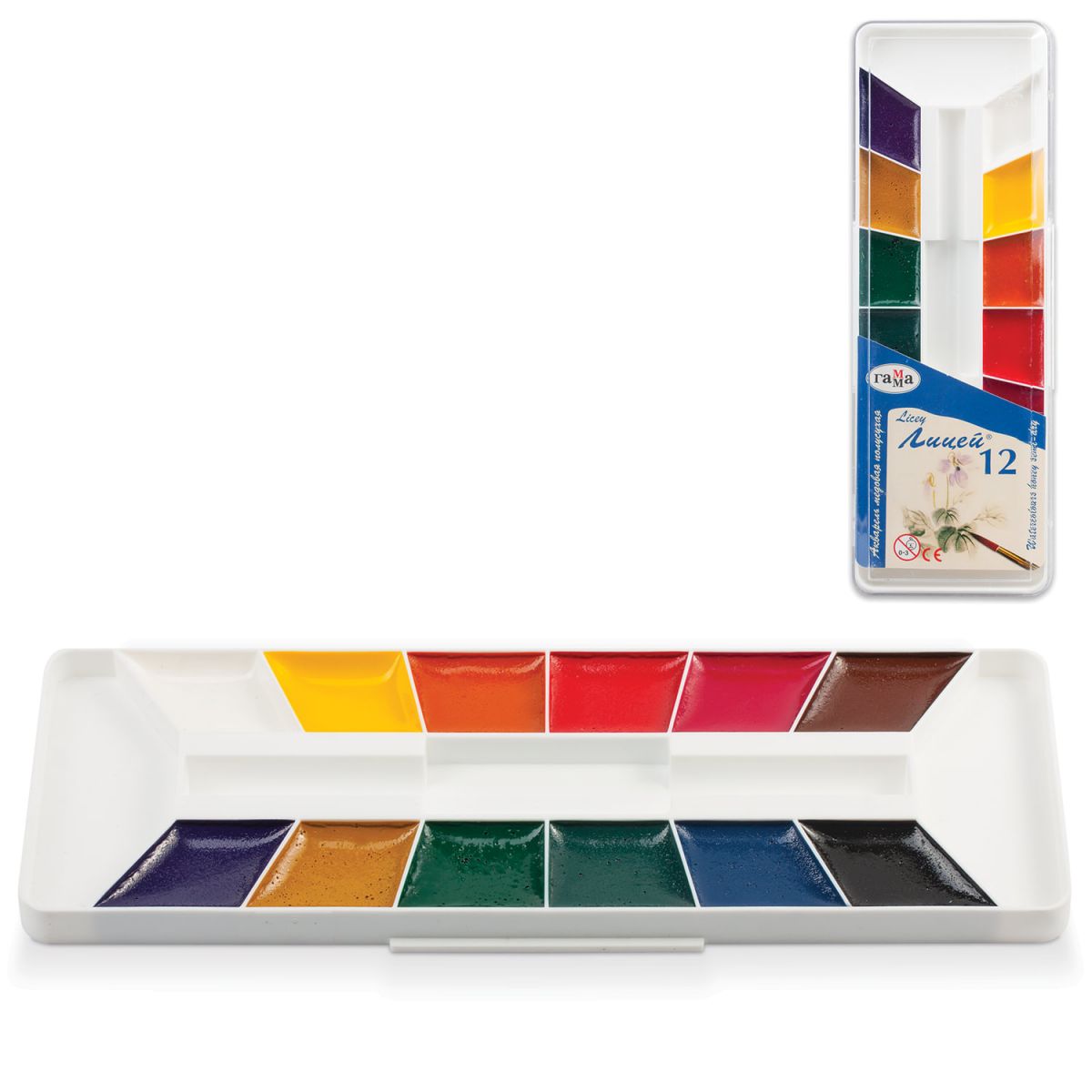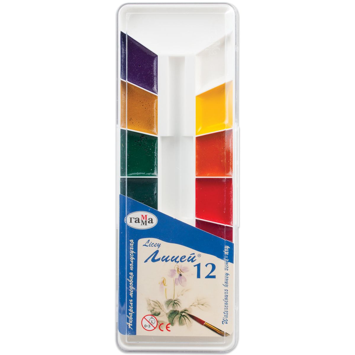 Краски акварельные ГАММА «Лицей», 12 цветов, медовые, без кисти, пластиковая коробка