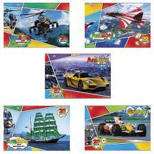 Альбом А4 формата, на скобе. Внутренний блок - 20 листов, офсетная бумага 100 г/м2. Обложка изготовлена из плотной офсетной бумаги 120 г/м2. Поставляется в 5 вариантах дизайна .