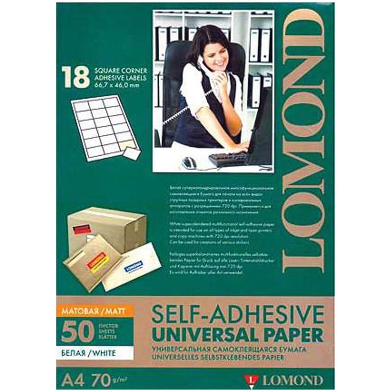 Бумага самоклеящаяся А4 50л Lomond белая 18фр. 2100135