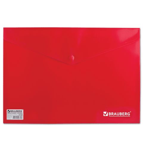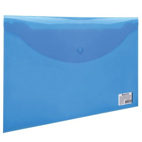 Папка-конверт с кнопкой BRAUBERG А4 прозр.синяя 0,15мм 221637