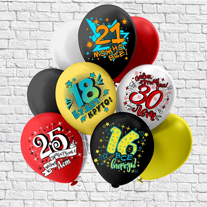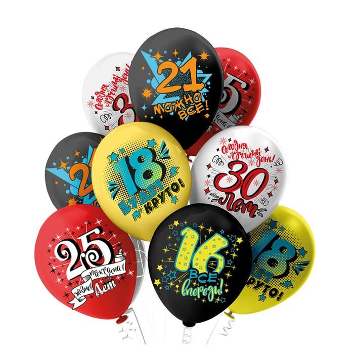 Воздушные шары 12" С ДР! Круглые даты! 25шт/уп